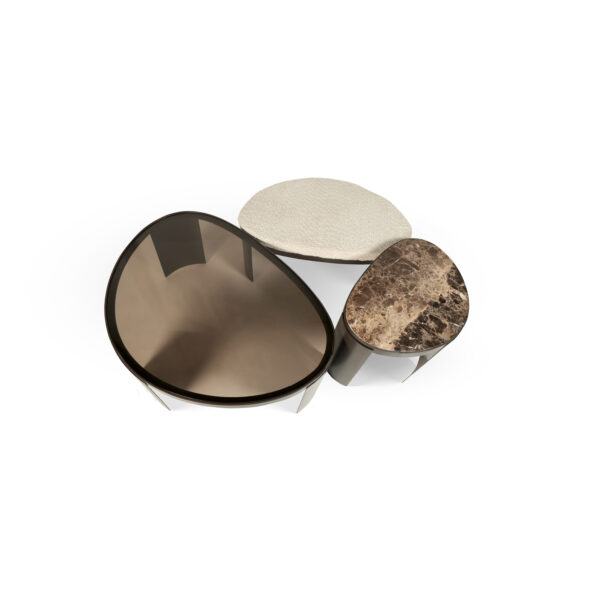 De LIORA salontafel set combineert zachtheid en elegantie met functionele veelzijdigheid. De verfijnde proporties maken een vloeiende styling mogelijk, terwijl een samenhangende en luxueuze uitstraling behouden blijft.