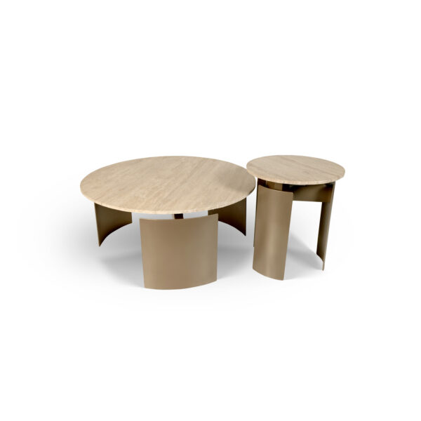 De TORIN salontafel set wordt gekenmerkt door een gestructureerd ontwerp en een krachtige uitstraling. Met haar sterke lijnen en gebalanceerde proporties brengt TORIN architectonische helderheid in elk interieur.